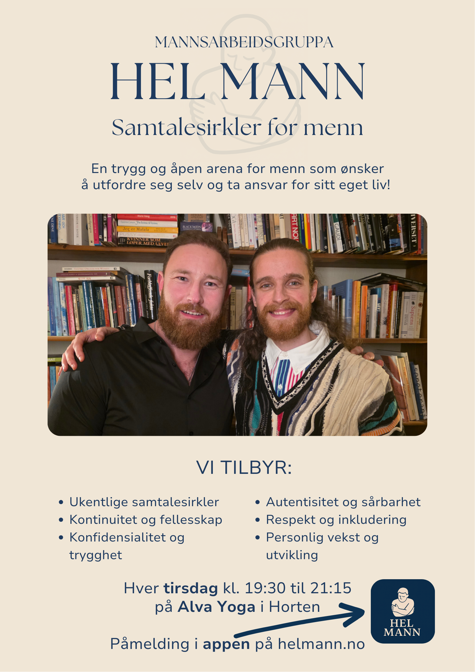 Ukentlige samtalesirkler for menn hver tirsdag fra kl. 19:30 - 21:15.
