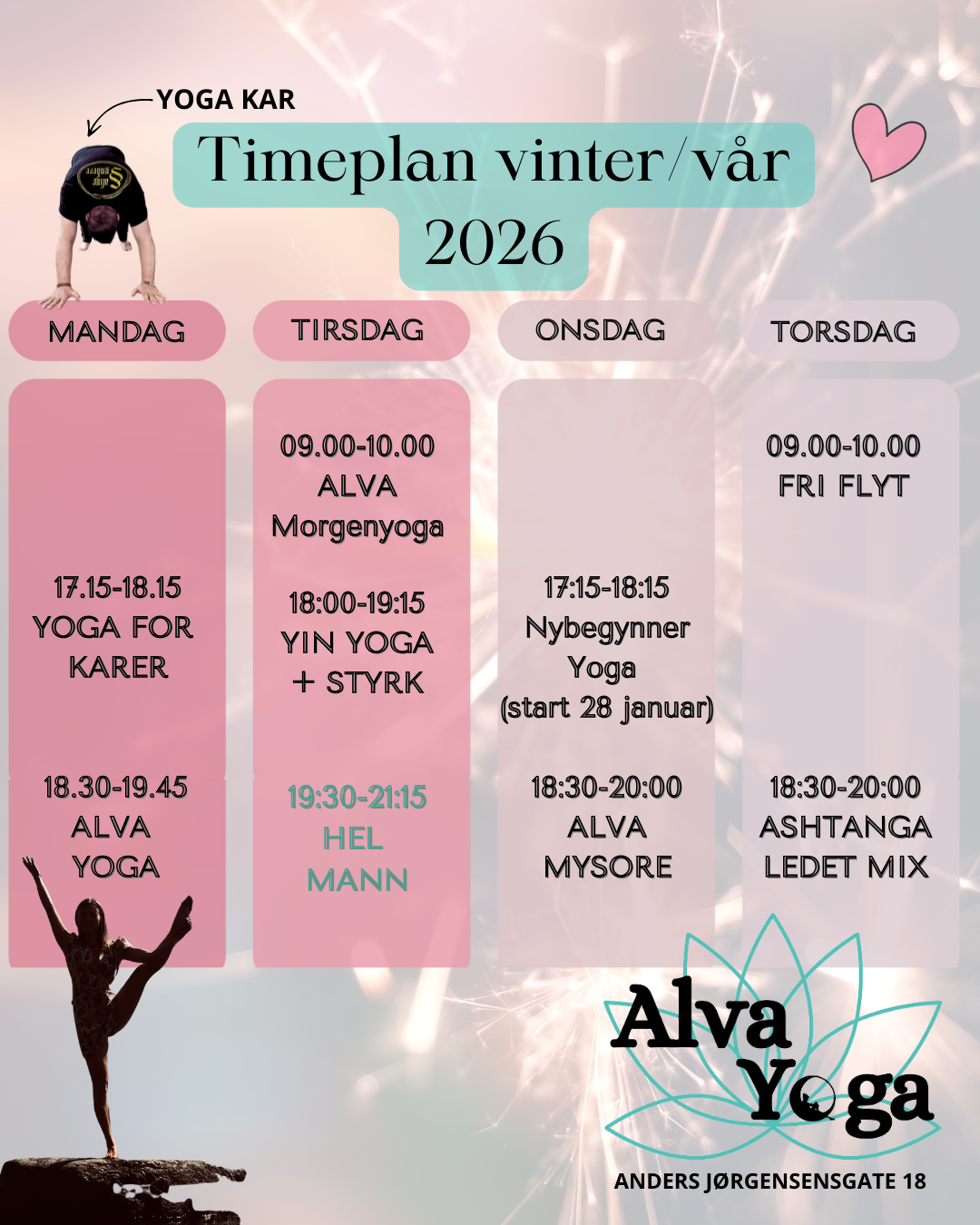 Dynamiske yogaklasser for deg som liker en utfordring, basert på Ashtanga-systemet. Gir styrke, kjernemuskulatur, fleksibilitet, indre ro, fokus - og mer.